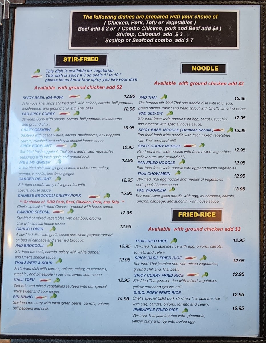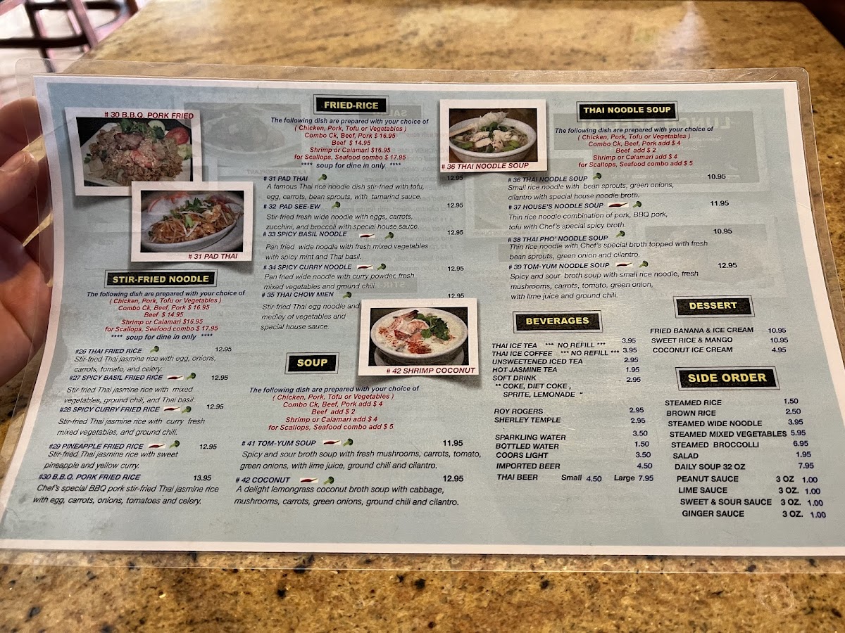To elevate your culinary adventure, pair your meal with a selection from their beer menu, including refreshing Thai beers and domestic options. And no meal is complete without indulging in a glass of their renowned Thai tea—a creamy, sweet beverage that serves as the perfect accompaniment to the bold flavors of your meal.