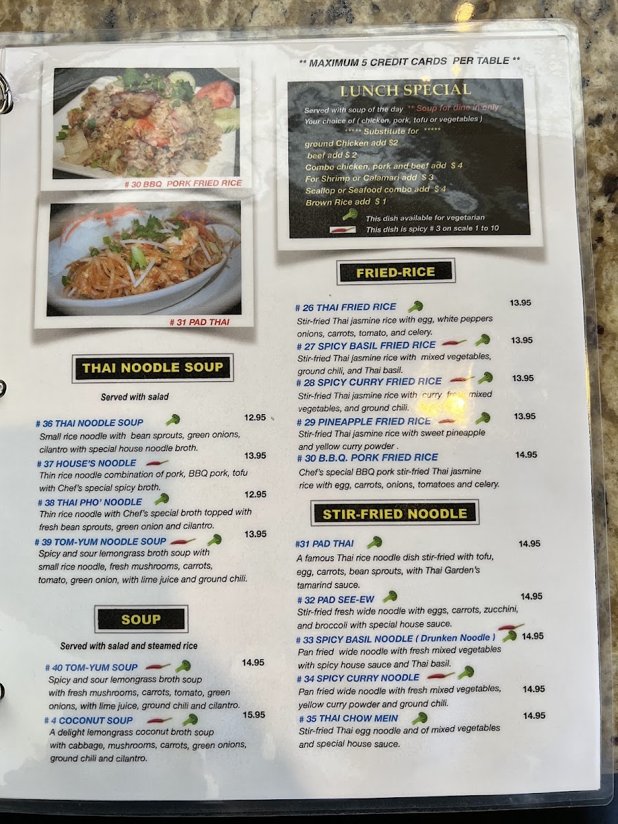 Thai Garden is more than just a restaurant; it's a celebration of the rich and diverse flavors of Thailand, served in a friendly and inviting environment. Whether you're a local or just passing through, make sure to stop by this exceptional establishment for a delightful dining experience that will linger in your memory long after your meal is finished.